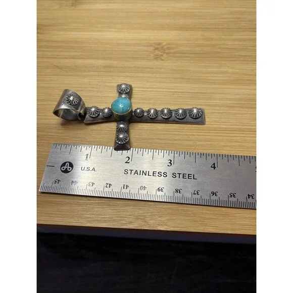 Chimney Butte Native American Sterling Cross Pendant Turquoise