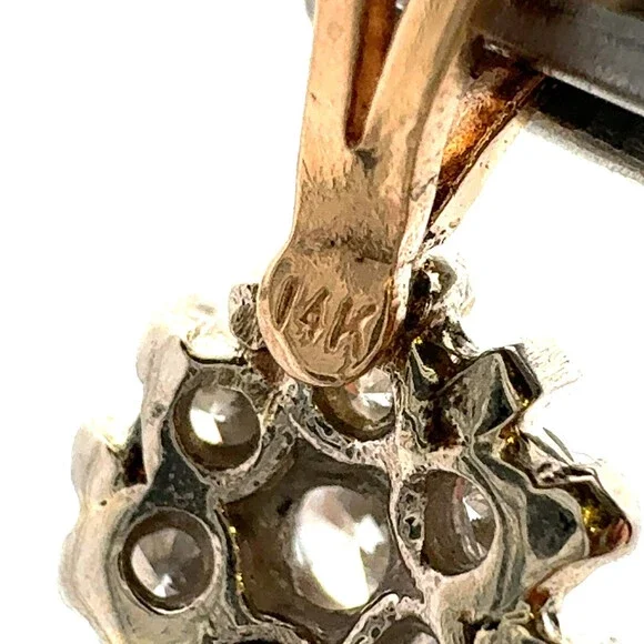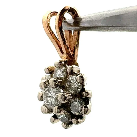 Estate 14K Yellow White Gold Round Diamond Cluster Petite Pendant