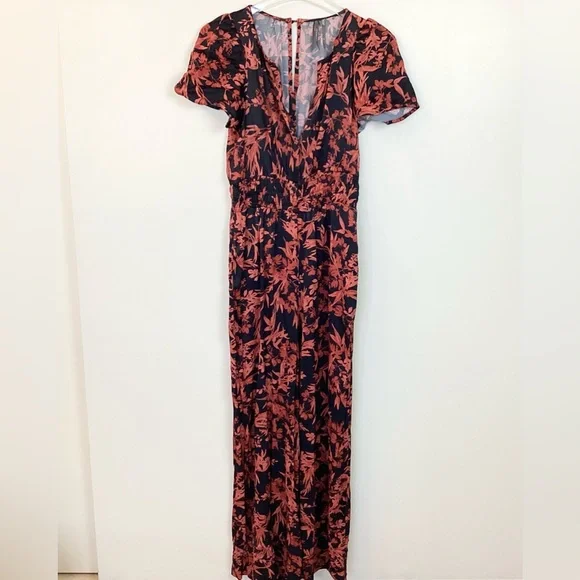 by Anthropologie Short Sleeve Floral Somerset Jumpsuit - Black Size XSPull-on stylingOn-seam pocketsBack keyhole with button closure Elastic band at waistPit to pit: approx 17”Inseam: approx 28”Length: approx 55.5”
