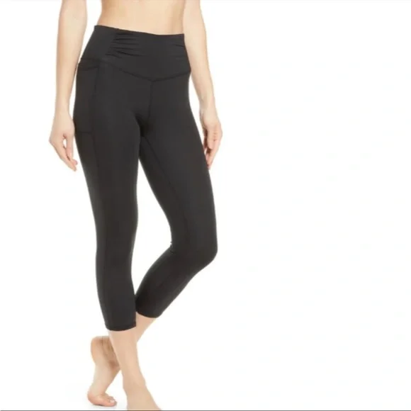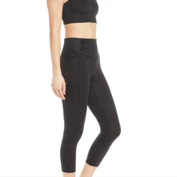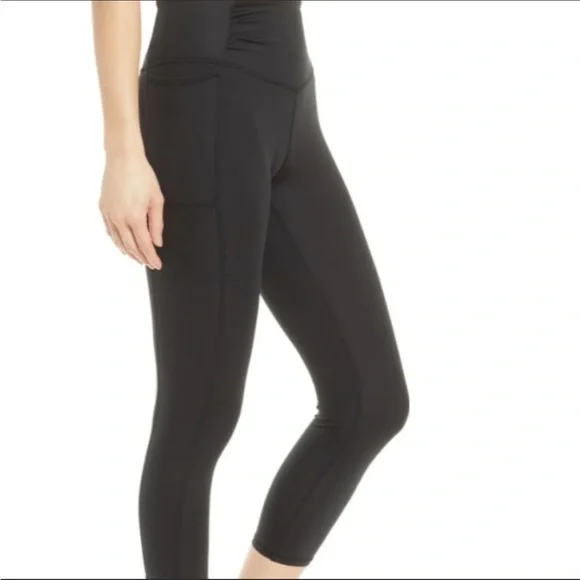 Brand new. Never worn. MSRP $98. Designed for sweating in style, these breathable leggings are featured in a super high-rise, 7/8 length silhouette with side pockets and ruched, defined waistband to hold you in tight no matter the workout.
