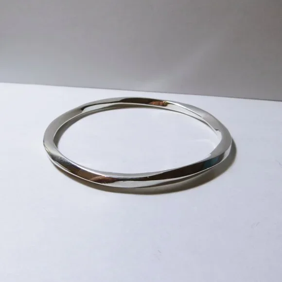 The product is an authentic signed TIFFANY & CO 1999 Twisted Bangle bracelet made of solid .925 sterling silver. This retired piece features a classic bangle style with no main...