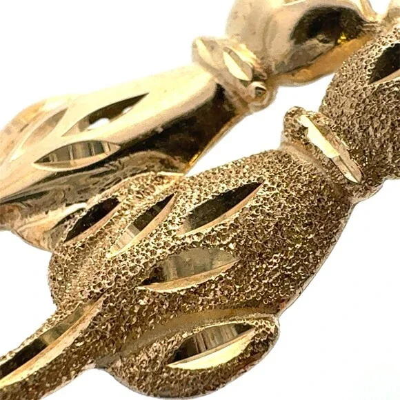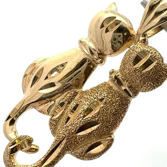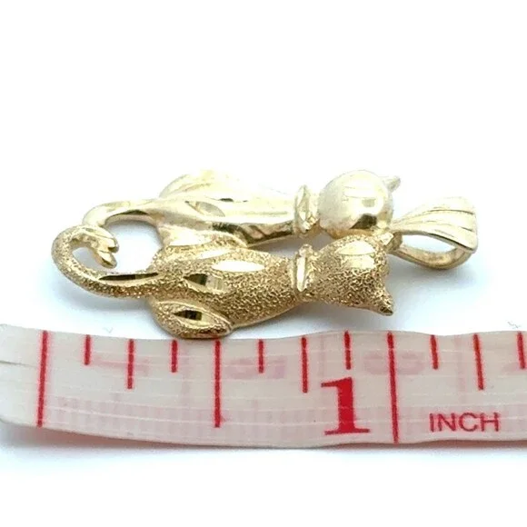 * Estate 14K Yellow Gold Polished Satin Diamond Cut Engraved Couple Kitty Cat Pendant* Length including bale: 1-1/4"* Inside bale measurements: 4.7 mm x 3.4 mm* Width: 5/8"*...