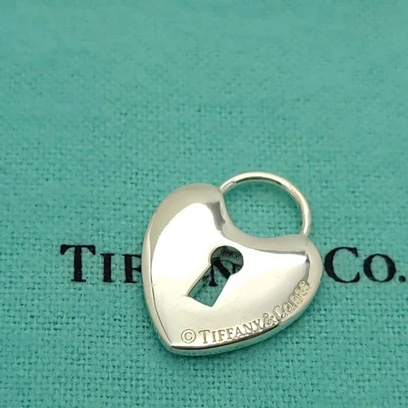 Tiffany & Co. Medium Heart Lock Charm Pendant in 925 Sterling Silver with Pouch