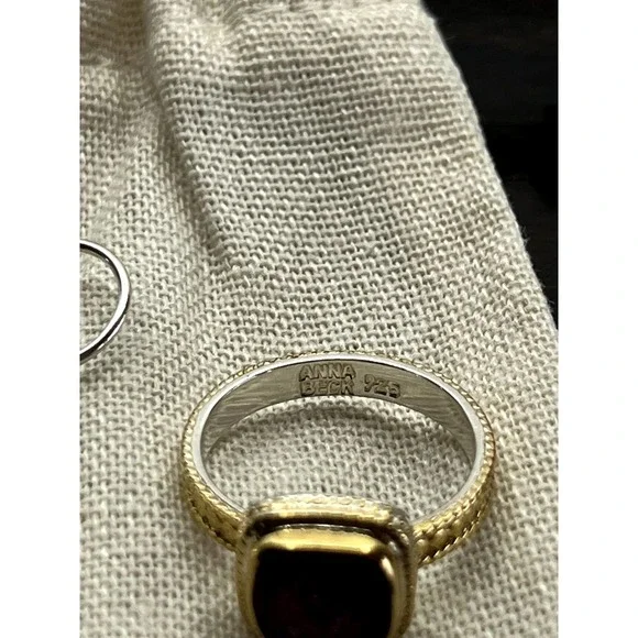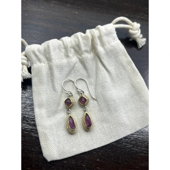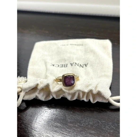 Anna Beck Ruby/Gold Double Drop Earrings and Stacking Ring Size 6