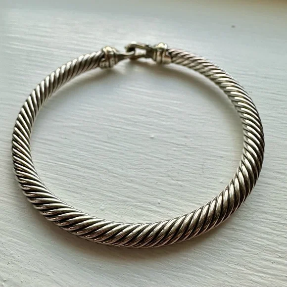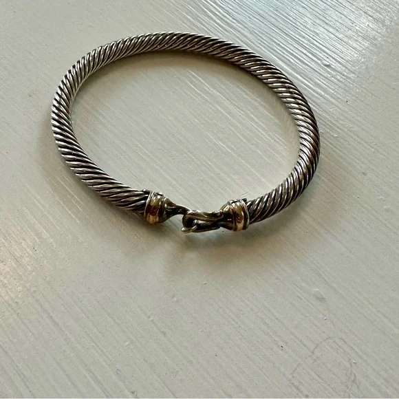 David Yurman Buckle Classic Cable Bracelet Sterling Silver with Gold, 5mm