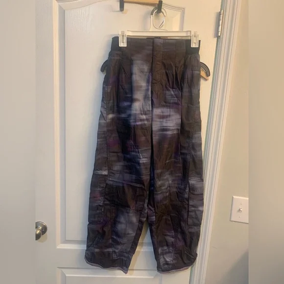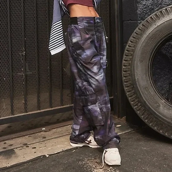 Free People Mesmerize Me Black Printed Wide Leg Cargo Pants Women’s Size XSYour favorite to-and-from pants are now featured in a playful printed fabrication with the same cargo-inspired details and ribbed knit waistband you know and love. Size: XSColor: Black Combo**Fit:** Slouchy, relaxed fit; high-rise, full-length legs **Features:** Lightweight nylon fabrication, printed design allover, stretchy elastic waistband with ribbed knit detailing, oversized pockets, cargo-inspired pocket at leg, pleated detail, snap-button detail at bottom of legs