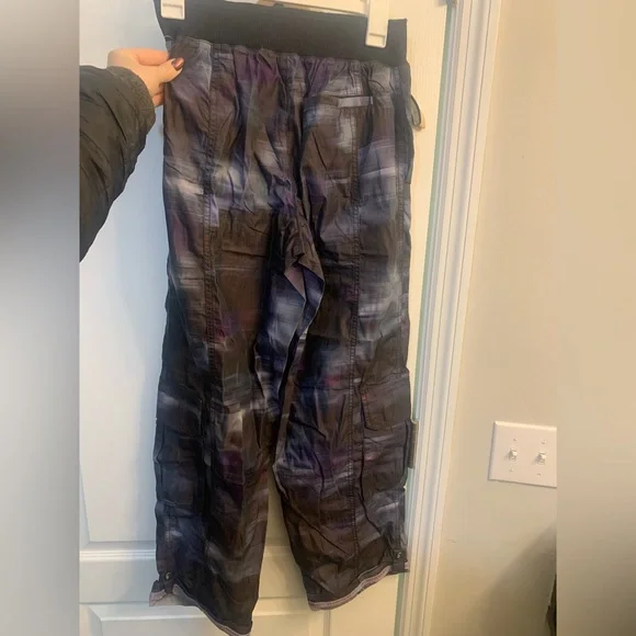 Free People Mesmerize Me Black Printed Wide Leg Cargo Pants Women’s Size XSYour favorite to-and-from pants are now featured in a playful printed fabrication with the same...