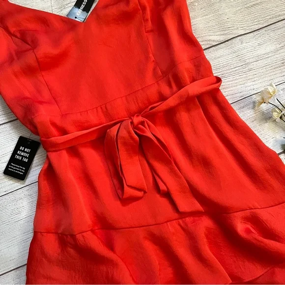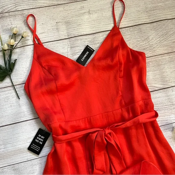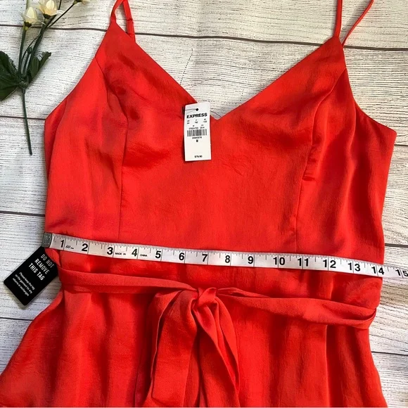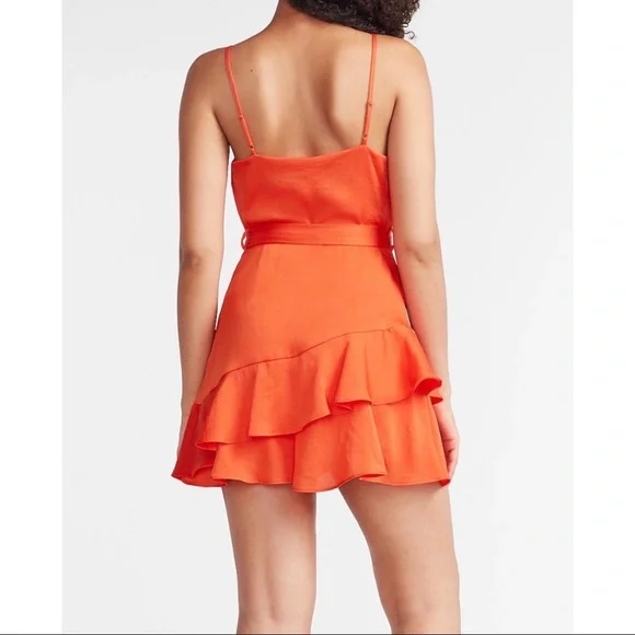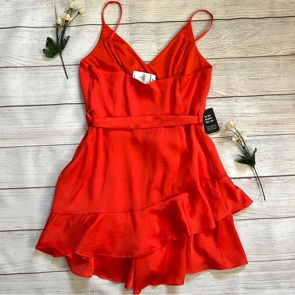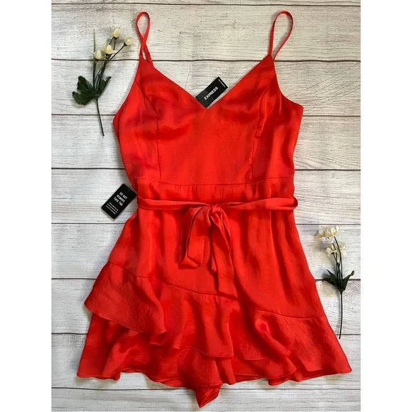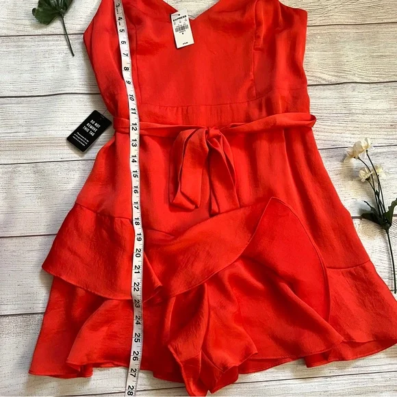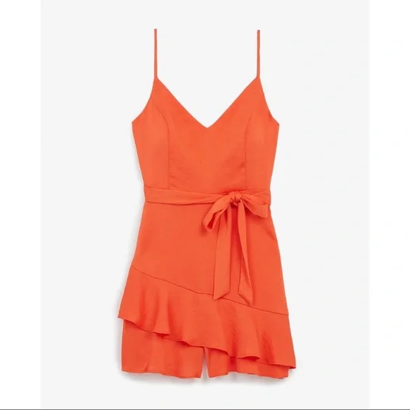 Express Ruffle Wrap Front Skort Romper• New with tags • Bold Orange• V-neck• Sleeveless• Adjustable spaghetti straps• Hidden hook and zip closure• Sash tie belt•...