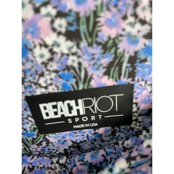 The BEACH RIOT Piper Leggings feature a high-waisted design with a ditsy floral print in black and purple. These stylish leggings offer a blend of comfort and fashion, perfect for both workouts and casual wear.High waistFloral printElastic waistAnklePull-on style 75% polyester, 25% spandex Hand wash, dry flat Made in the USA Condition: New with tags.MSRP: $120Approximate MeasurementsLength: 38"Waist: 14"Inseam: 27"Rise: 11"Tags: workout, exercise, luxury, yoga, gym, athleisure, athlete, breathable, fast drying, running, athletics, performance, premium, sports, jogging, outdoors, cool weather, fall, winter, training, morning run, errands, barbie, barbiecore, classy, elegant, soft, comfortable, trendy, trends