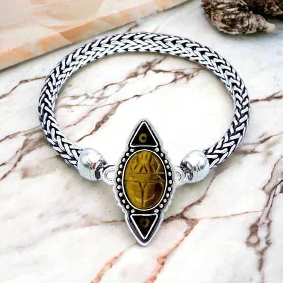 Tabra 925 Sterling Silver Tiger Eye Onyx Charm JewelryTabra Jewelry 925 Sterling Silver Tiger Eye Onyx Connector Charm from Esme´s Vault OOK462Hi I´m Esme. Many of you know me as the original designer of Lunch at The Ritz Jewelry and Ritzy Couture.I´m delighted to say that I will now be carrying brand new and never worn Tabra jewelry designed by my dear and lifelong friend Tabra Tunoa.Today, I´m offering a brand new and never worn Tabra Jewelry 925 Sterling Silver Tiger Eye Onyx Connector Charm from Esme´s Vault OOK462Known as “The Shapeshifter,” this stone of courage and motivation will help you be successful at everything you do. The Tiger´s Eye crystal helps to transform those toxic feelings into courage and self-confidence, shifting your perspective so you can see the way forward, even in times of fear.A powerful protection stone, Black Onyx absorbs and transforms negative energy, and aids the development of emotional and physical strength and stamina.Measurements:• Tabra Jewelry 925 Sterling Silver Tiger Eye Onyx Connector Charm from Esme´s Vault OOK462. Made by hand.• This Connector Charm is approximately 1.5" Long and 1.0" Wide.• Made in Bali, Indonesia and available directly from me!Inspired by the Women of the World and Designed by Tabra International. Made in Bali, Indonesia and available directly from me!SKU: TB-OOK462