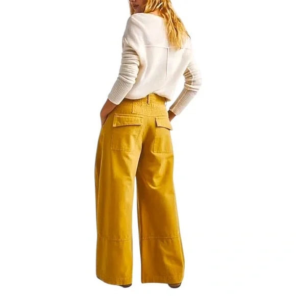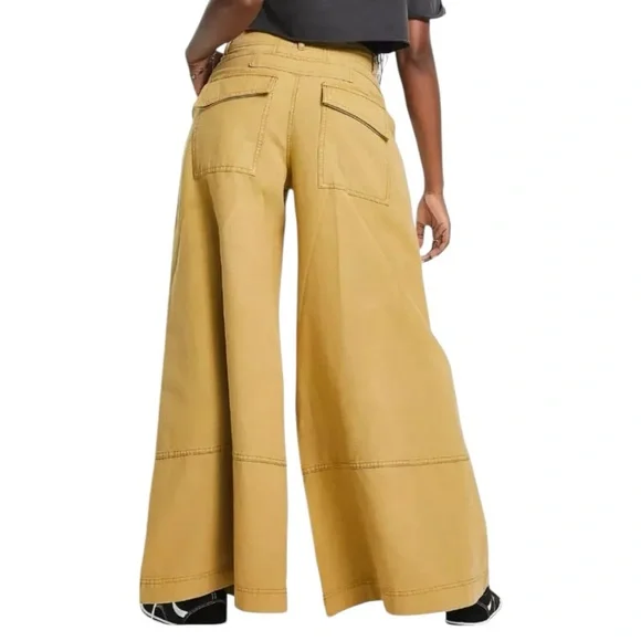 NEW 6 FREE PEOPLE Out Of Touch Extreme Wide Leg Pants in Vintage Tan