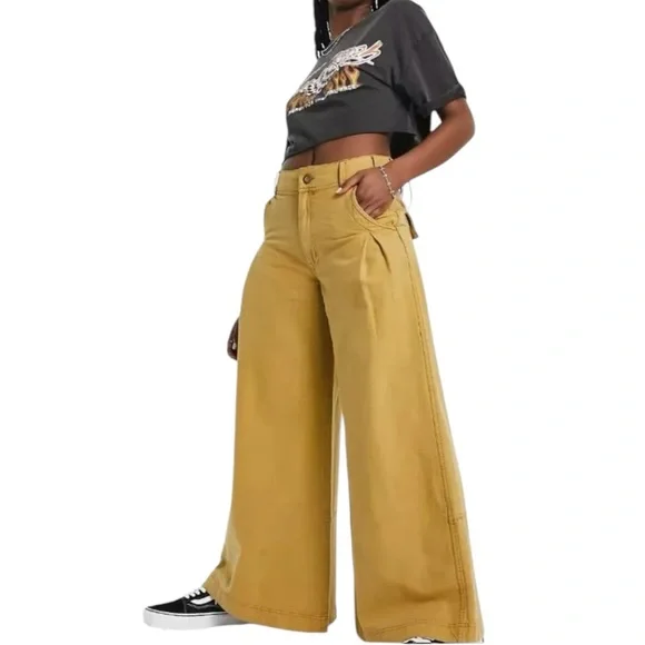 Super-wide pants Mid-rise Slouchy silhouette Longer inseam Puddled hemline effectZip fly and button closureFour-pocket designBelt loops Machine wash cold88% Cotton, 12%...