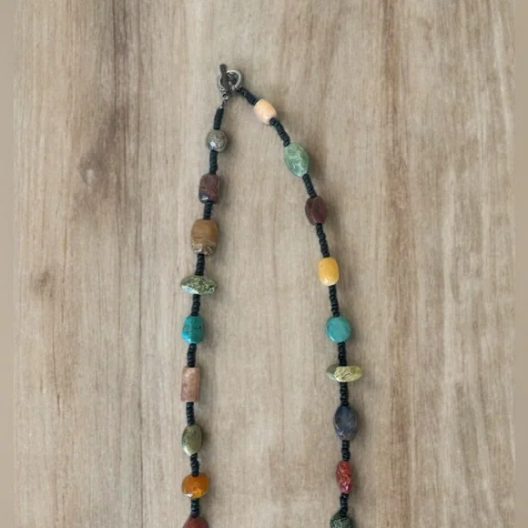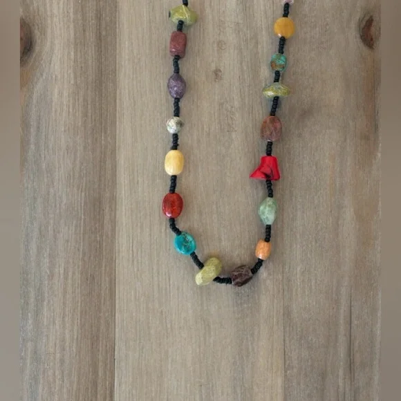 This beautiful necklace is the perfect accessory for anyone looking to add a touch of boho chic to their outfit. With its stunning blue color and crystal material, this necklace is sure to make a statement. The amethyst, turquoise and variety of other crystals add a touch of spirituality to the piece, making it perfect for healing and meditation.The necklace is handcrafted and artisan, making it a unique and one-of-a-kind piece. Its boho style and Coachella aesthetic make it perfect for anyone looking to add a touch of bohemian flair to their outfit. Whether you´re dressing up for a special occasion or just want to add some eclectic style to your everyday look, this necklace is the perfect choice.