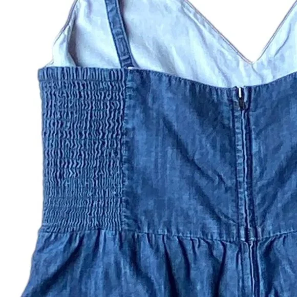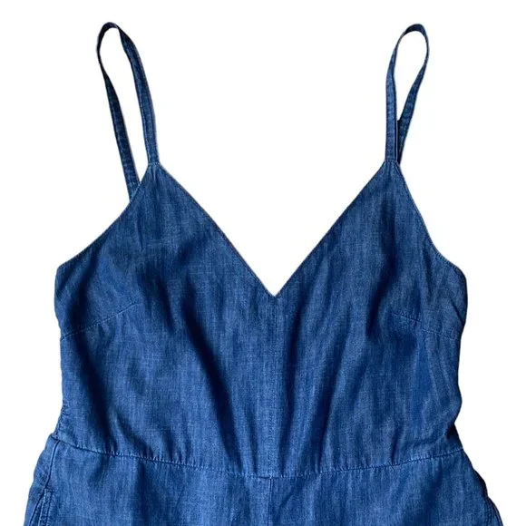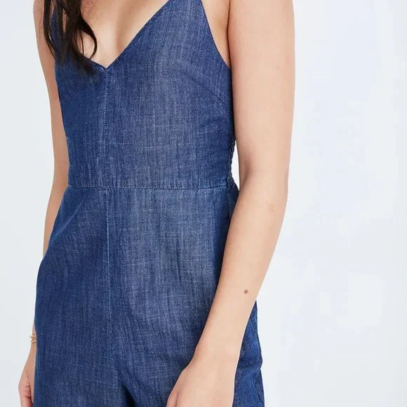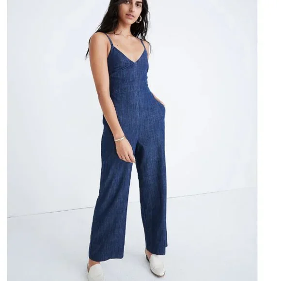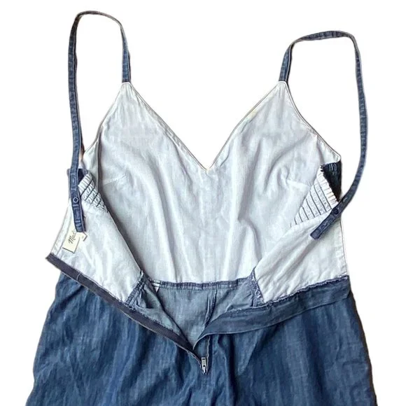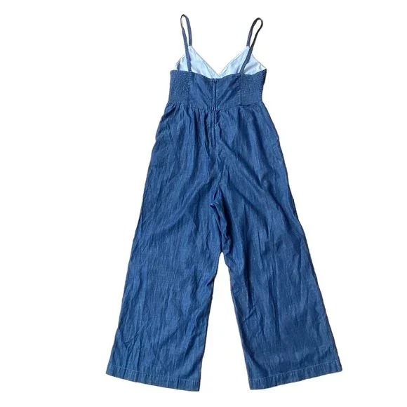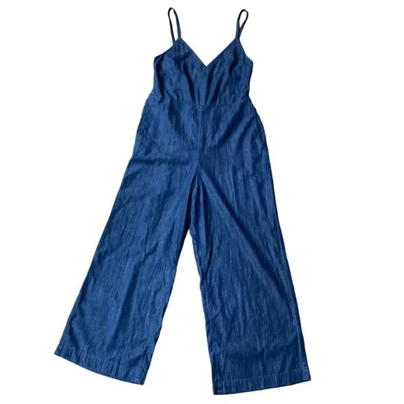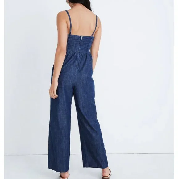 Madewell Denim Thistle Cami Smocked Back Wide Leg Boho Festival Tank Jumpsuit SleevelessFeatures:Jean -denim chambray jean boho jumpsuit-retro-inspired bodice-sleeveless-straps are wide enough to layer over a bra-3 button adjustable straps -v-neckline-smocked back with stretch for a flattering fit-back zip closure-wide leg-side seam pockets-medium blue denim wash-62% cotton, 38% lyocell-size 8Measurements are taken flat and are approximate:Armpit to armpit: 16.5”Shoulder to hem (from middle button on strap): 55.5” Waist: 17”Inseam: 26.5”Leg opening: 12.5”Style profile: romper, summer, spring, fall, boho, beachy, coastal granddaughter, coastal cowgirl, beach, vacation, travel, sight-seeing, bohemian, hippie, festival, wide leg, tank, sleeveless, one piece, jumpsuit, blogger favorite, denim, jean, chambray, concert, pool party, BBQ, picnic, coffee date, casual dinner date, boardwalk, denim on denim trend, jumpsuit, festival, sight seeing, resrotwear