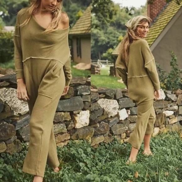 FREE PEOPLE intimately kickback romper jumpsuitIn khaki/greenWaffle/thermal material With cowlneck Relaxed, slouchy fit In excellent pre loved condition. No stains, holes or...