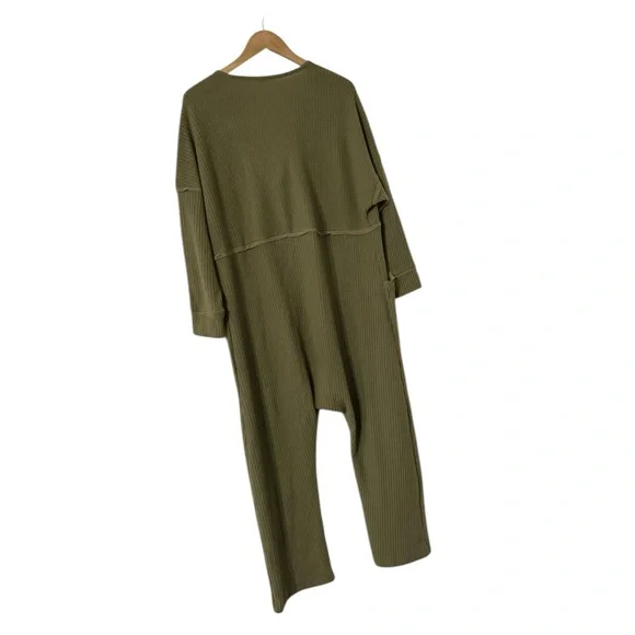 FREE PEOPLE intimately kickback romper jumpsuitIn khaki/greenWaffle/thermal material With cowlneck Relaxed, slouchy fit In excellent pre loved condition. No stains, holes or damagesSz SmallArmpit to armpit 24”Waist across 22”Inseam 23”