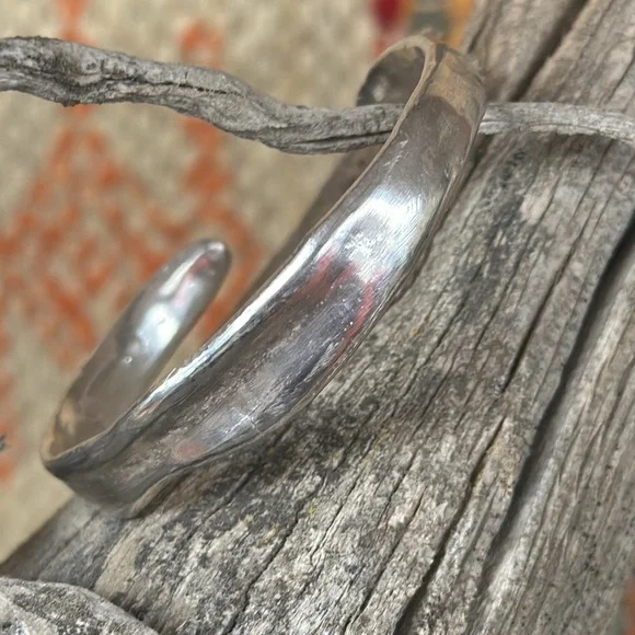 Sterling silver cuff with a wave like a mountain stream.