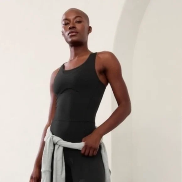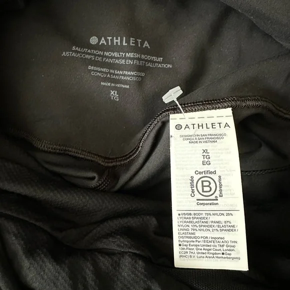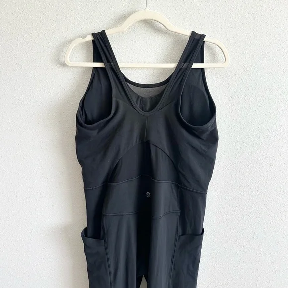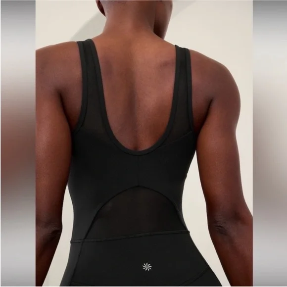 New without TagsSize X-LargeAthleta Salutation Novelty Mesh Bodysuit JumpsuitBlackFOR: Yoga or studio practiceFEEL: Powervita fabric is buttery soft with support that feels like a gentle hugFAVE: Mesh ventilation helps keep you coolFabric + Care75% Nylon/25% LycraWICKING: Pulls sweat away from the body to the surface of the fabric so it can evaporateQUICK-DRYING: Dries in a flash for ultimate comfort when breaking a sweatBREATHABLE: Airflow moves easily through the garmentRATED UPF 40+ (Excellent Protection)COMPRESSION: Keeps you held in and supported in all the right placesMachine wash and dry.Great for yoga, gym, or travel. Mesh helps keep you cool. Comfy and stretchy with pockets to stash your essentials.
