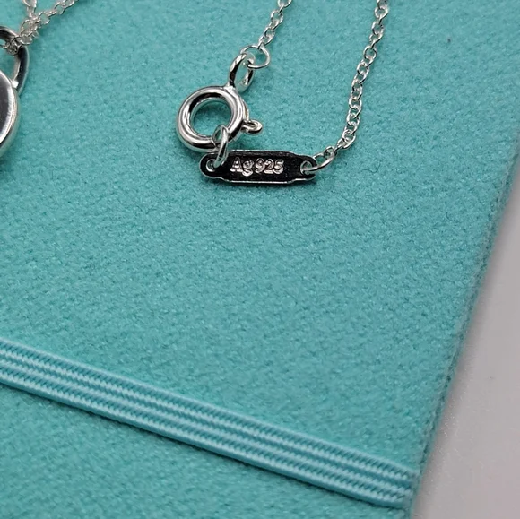 Tiffany & Co Return to Tiffany Pink Outline Medium Heart 16" NecklaceBoth Necklace and Pendant Charm are authentic Tiffany. Brand new,never worn. some faint hairline scratches...