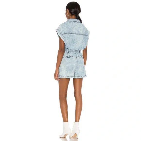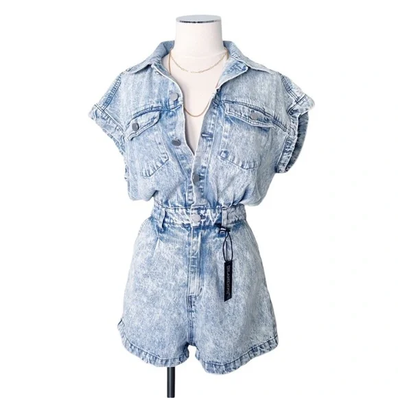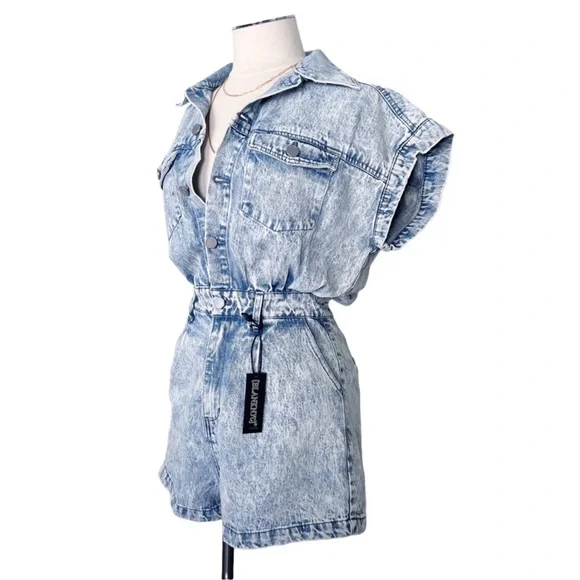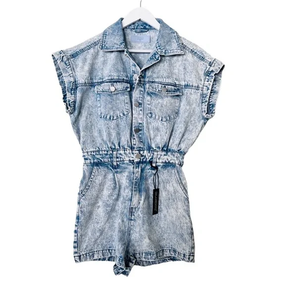 New BLANK NYC Cotton Denim Romper in Head Backstage Blue Sz M