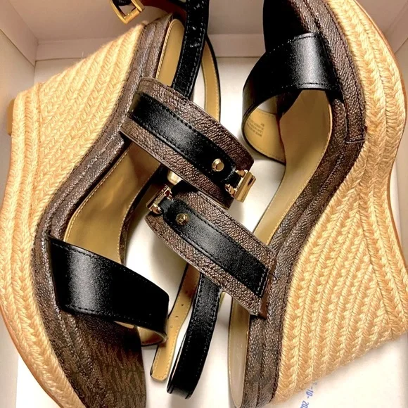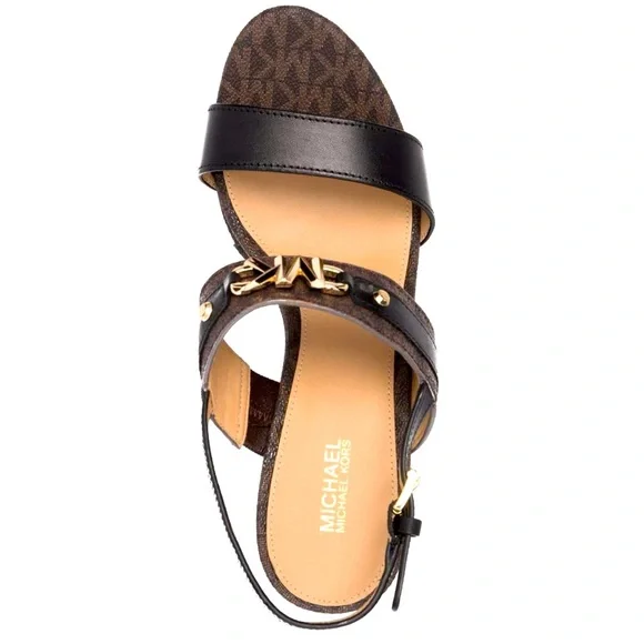 Michael Korslogo-plaque wedge sandals size 8