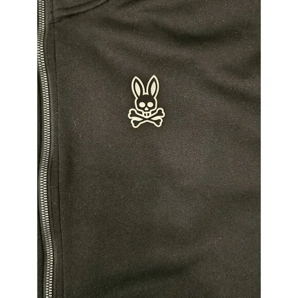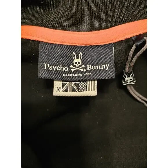 PSYCHO BUNNY Track Jacket Men´s Medium Full Zip Zipper Pockets Black/Orange/Blue