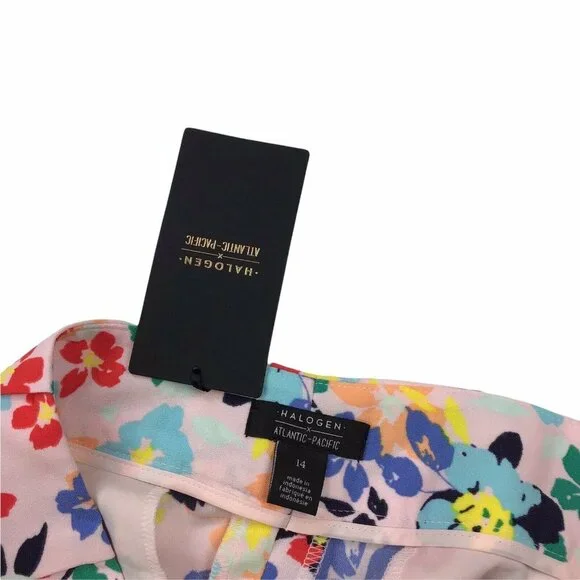 Halogen X Atlantic Pacific Wide Leg Pleat Waist Pants Colorful Floral Women´s 14