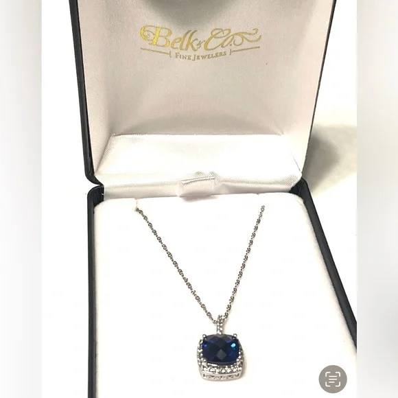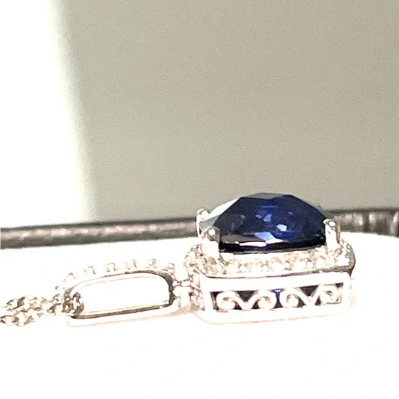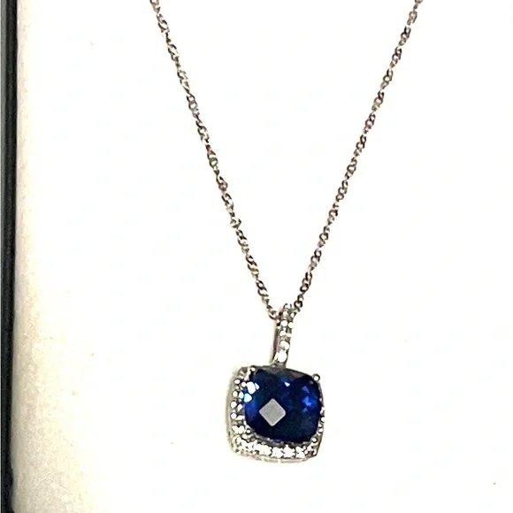 Sterling Cushion Cut 4.6ct Sapphire Necklace