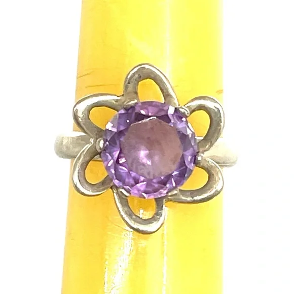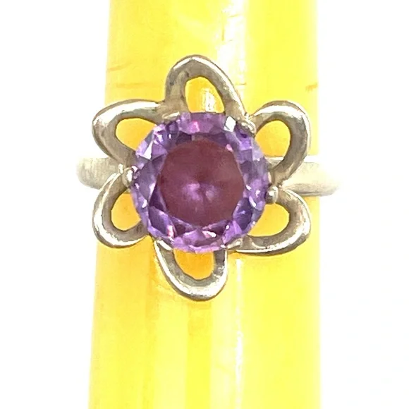 Elevate your jewelry collection with this breathtaking vintage masterpiece from a renowned Mexican artist. The pièce de résistance is the stunning round-shaped simulated alexandrite, boasting a mesmerizing purple hue that commands attention. As noted by the Gem Society, this simulated alexandrite possesses the same material properties as its natural counterpart, rendering it a true treasure. Crafted from 925 silver, this collectible ring embodies elegance and refinement. Sized at 6.5, it´s perfect for those seeking to infuse their style with sophistication and glamour. As a rare find in the realm of fine jewelry, this ring is a must-have for connoisseurs and anyone desiring to make a statement.