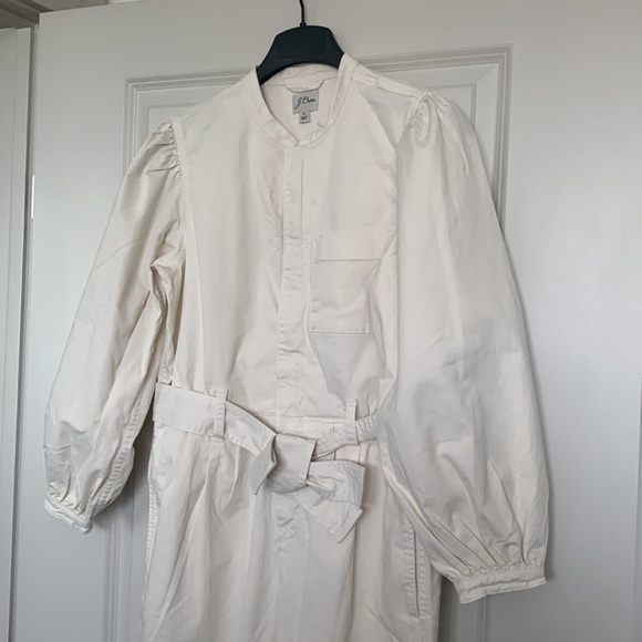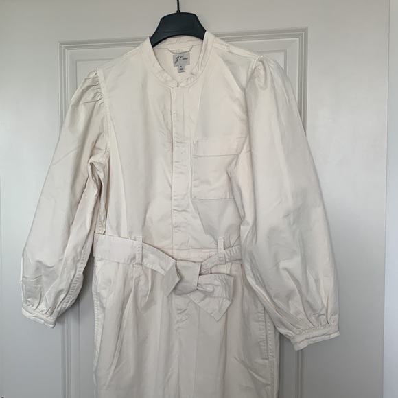 NWT. Color: IVORY28" inseam.We love this easy, comfortable jumpsuit crafted in classic cotton chino with puff sleeves and a flattering tie at the waist. By buying cotton products from J.Crew, you´re supporting more responsibly grown cotton through the Better Cotton Initiative.Cotton/elastane.Zip closure.Machine wash.