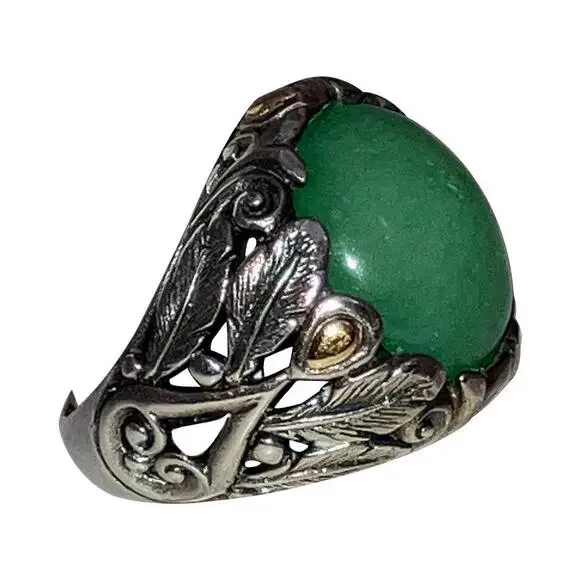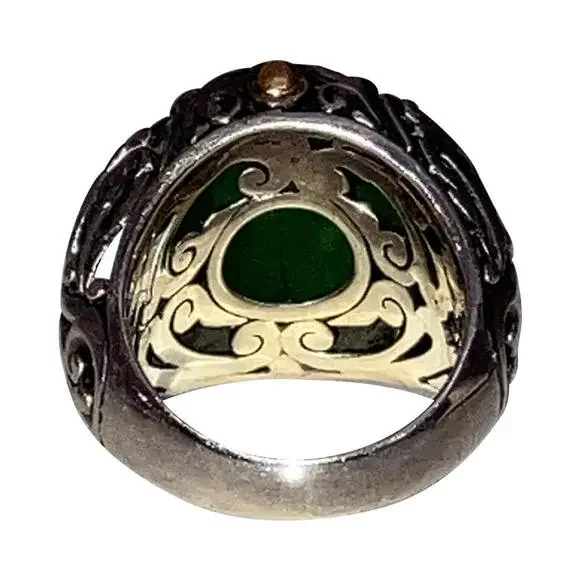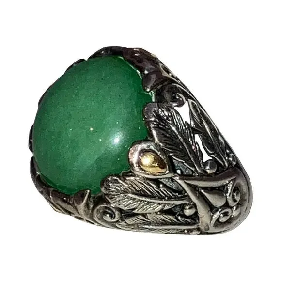 18 kt Sterling Jadeite Ornate Ring