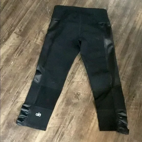 Alo Yoga Capri Legging Black Gloss & Breathable Mesh Ruched CuffNew With Tags *Size:X Smallpolyester * spandex * nylon