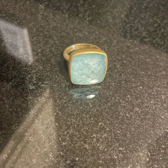 New beautiful one of a kind aqua marine square stone ring Sterling Silver with 22k gold plated purchased last summer in Athens, Greece by local jeweler See 3rd pic. (I have gained weight and ring doesn’t fit) Size 7.5