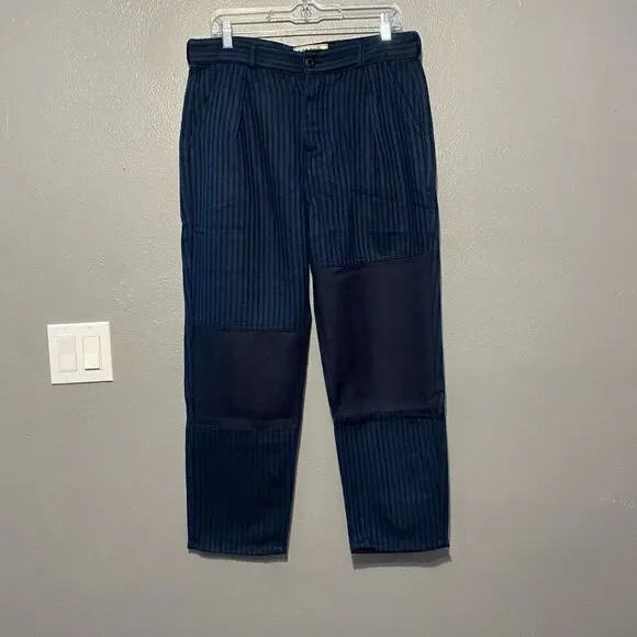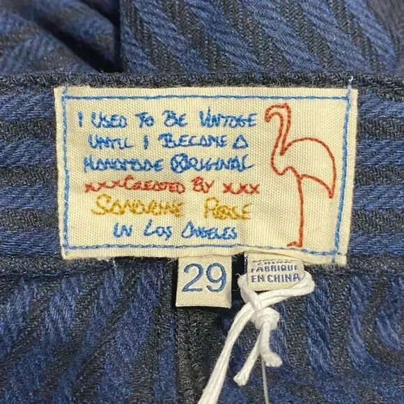 Free People Sandrine Rose Paper With PatchBlue Stripe Trouser Pants Size 29 New• Herringbone Blue Striped• Hidden button fly closure• Belt loops• Contrasting knee...