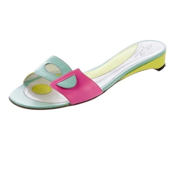 RARE RETRO Emilio Pucci Colorblock Leather Yellow Pink Green Slides Sandals 35