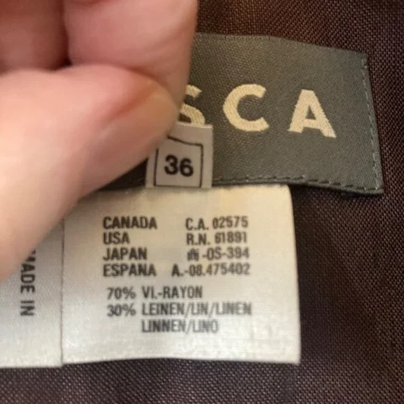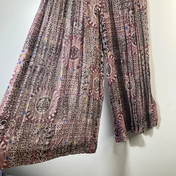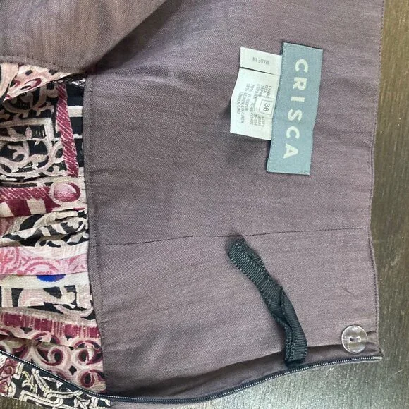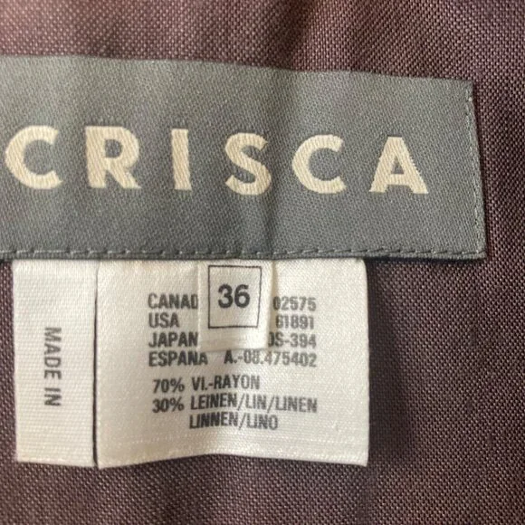 Vintage Crisca LInen Blend PantsBrown Tan Red Womens EU 36 US XS, see measurements for true fit13" Waist 15" Rise 25" Inseam 39" LengthRayon Linen Geometric PatternWide Leg High Waist SheerPreowned in Like New conditionFeatures:• Wide Leg High Waist Sheer Linen BlendSize: Womens XSCondition: Pre-Owned Good