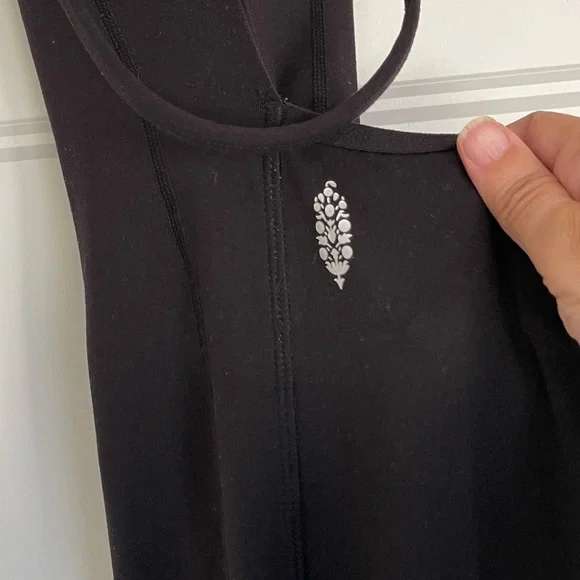 Free People Movement Black Heat Waves Strappy Flare Leg Jumpsuit Size Medium preowned no stains rips or holes measurements armpit to armpit 15” across unstretched waist 15”...