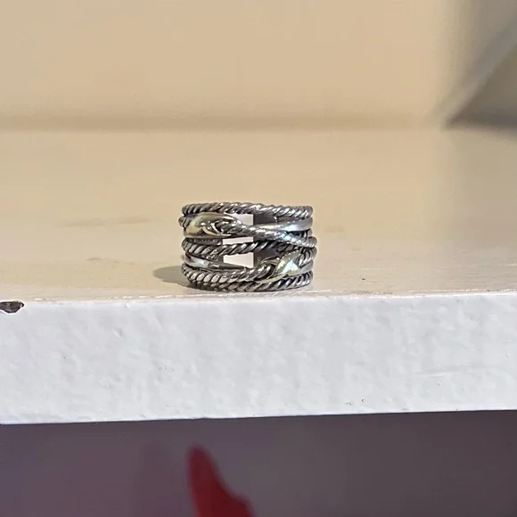 Elegant 18K Gold & Sterling Silver Double crossover David Yurman woman’s Ring. Ring size 5 1/2