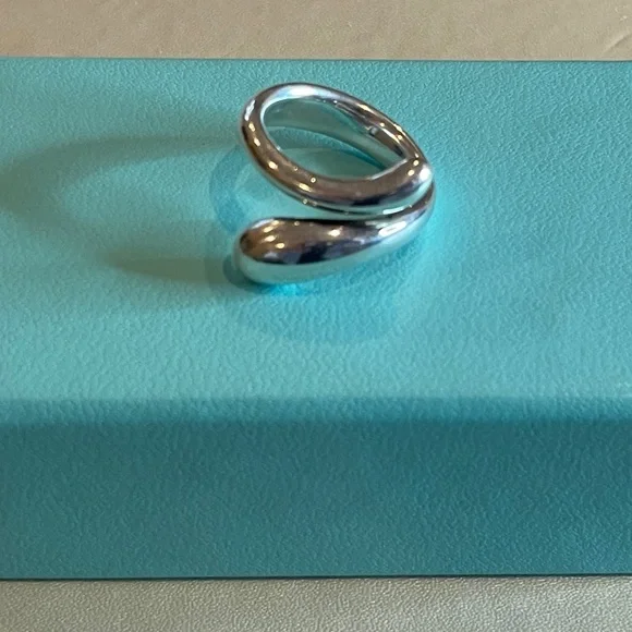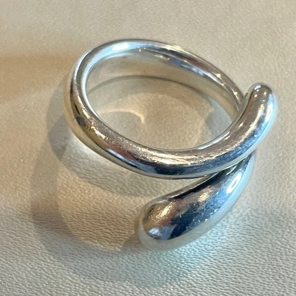 Tiffany & Co. Elsa Peretti Sterling Silver Teardrop Bypass RingSize 6.5 - 7
