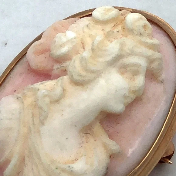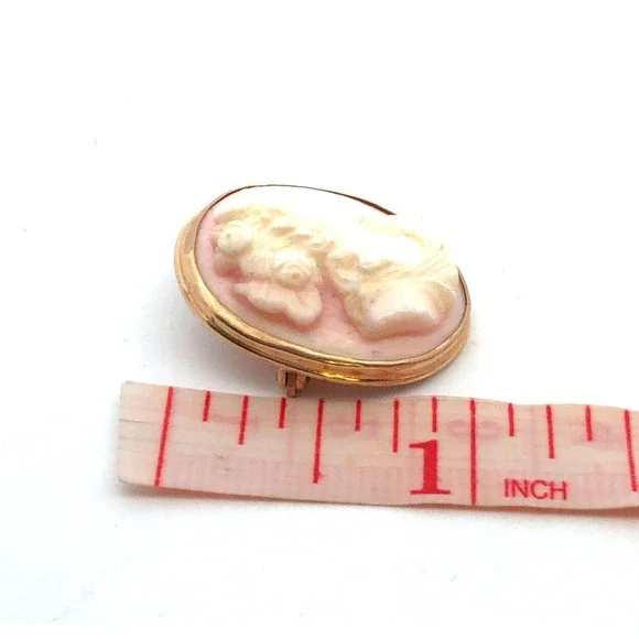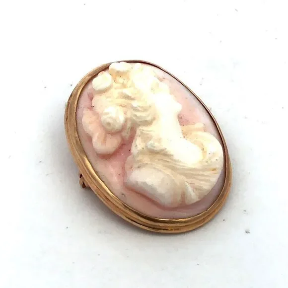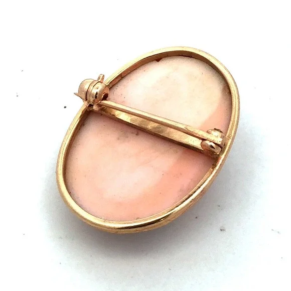 Estate 14K Yellow Gold Carved Light Pink Cameo Oval Pin Brooch