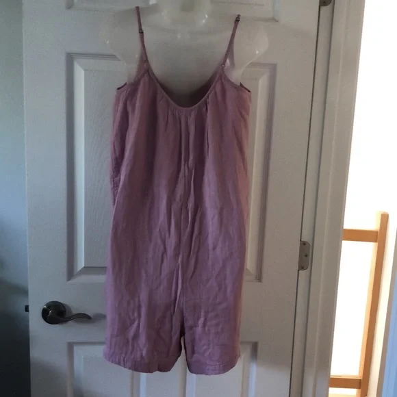 Easygoing and stylish at once, this breezy romper can take you from the beach, to brunch, to backyard barbecues all summer long. Lilac color* Cotton* Adjustable straps* Pull-on styling* Machine washPit to pit 17”, inseam 4”