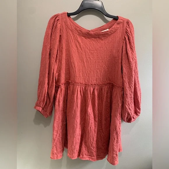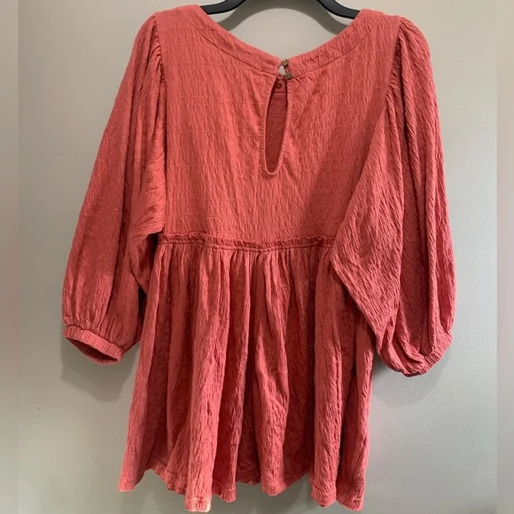 The perfect romper for any occasion from our free-est collection featured in a babydoll-inspired silhouette with exaggerated sleeves and exposed seaming for added dimension. Size: SmallColor: Rose PinkSide pockets Keyhole back closureSmocked and texturedExcellent condition