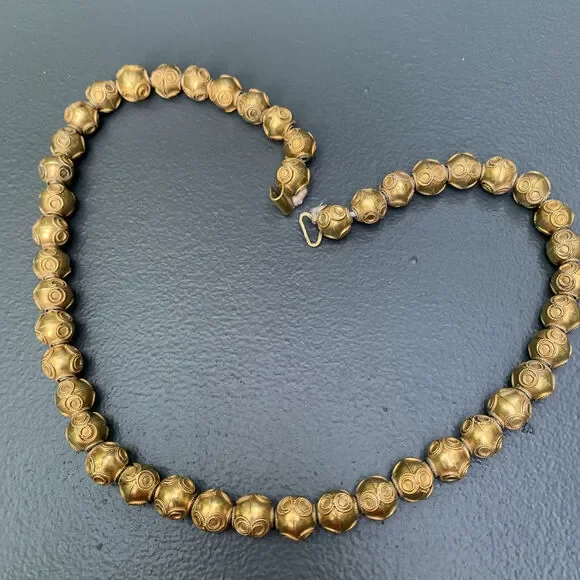 Antique Victorian Etruscan Revival gold gilt silver Ball beaded necklace . Anti
