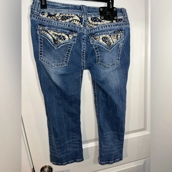 Miss Me Y2K Vintage and Retired Paisley Crystalized Designed Capri Jeans Size 31