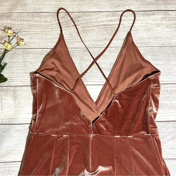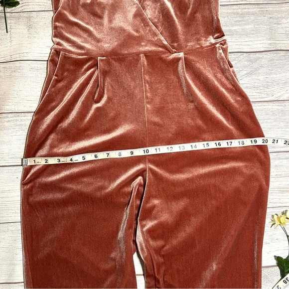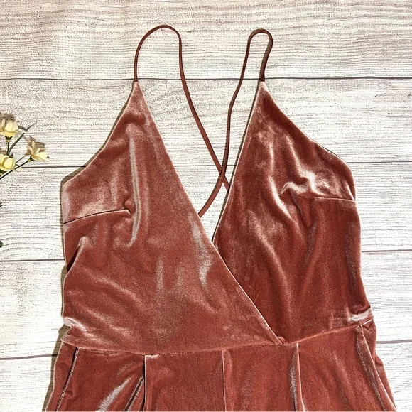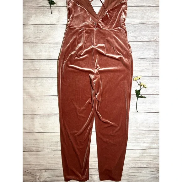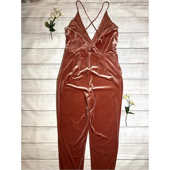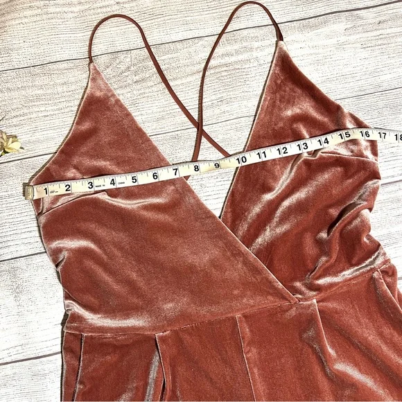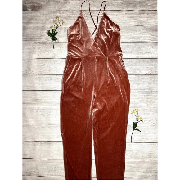 Express Velvet JumpsuitSmooth crushed velvet meets a sleek v-neck for a jumpsuit that´s as daring as it is gorgeous. We love it with heels and a blazer for a complete look.• New without tags• V-neck• Wrap front • Thin cami straps that cross at the back• Velvet• Silky lining• Sleeveless• Slant hand pockets • Hidden back hook and zip closure• Polyester/Spandex** No sash tie **Feel free to ask any questions or submit any offers! ☺️