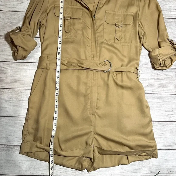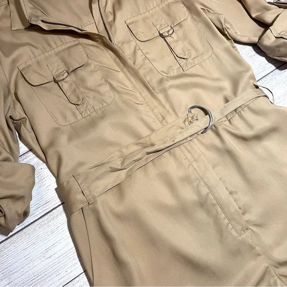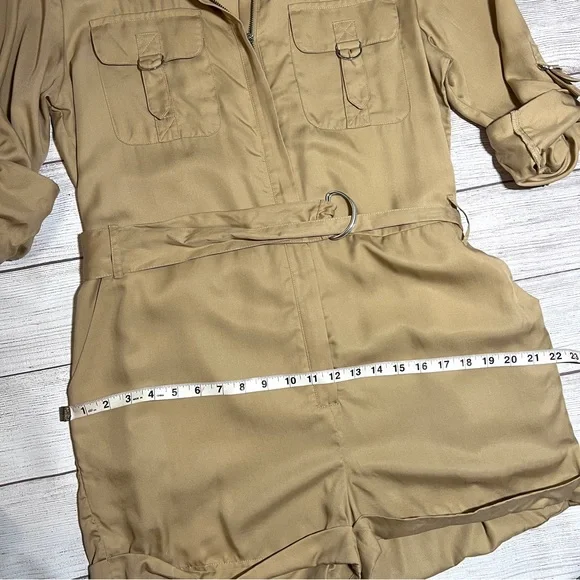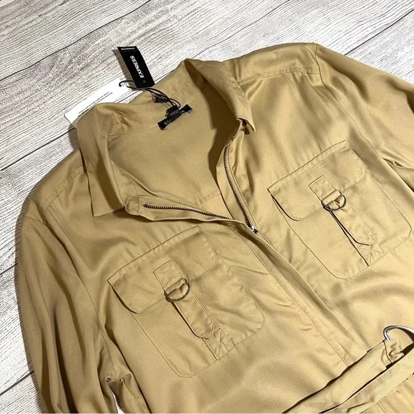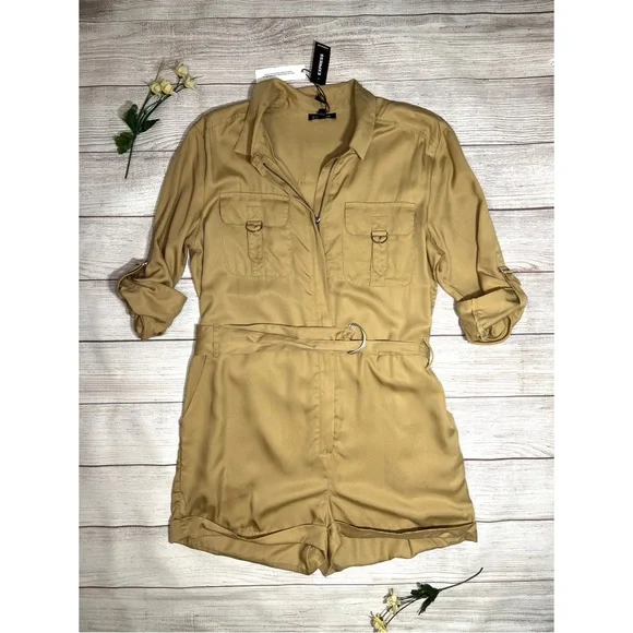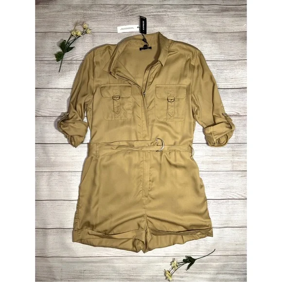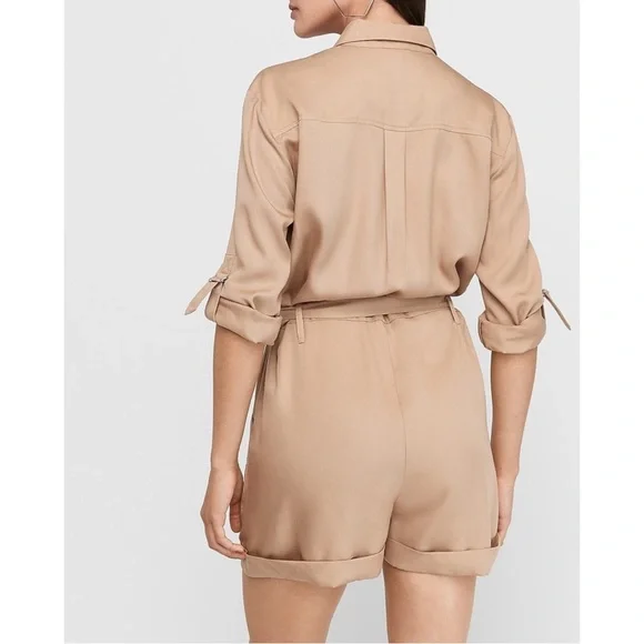 Express Silky Utility RomperThis utility-inspired romper is a perfect pick for any day.Featuring chest flap pockets and a removable belt, we love it with sneakers or heels.• New with tags• Caramel• Point collar• Zip front• Chest flap pockets• Long convertible sleeves with roll tabs• Removable adjustable belt• Slant side pockets• LyocellFeel free to ask any questions or submit any offers! ☺️