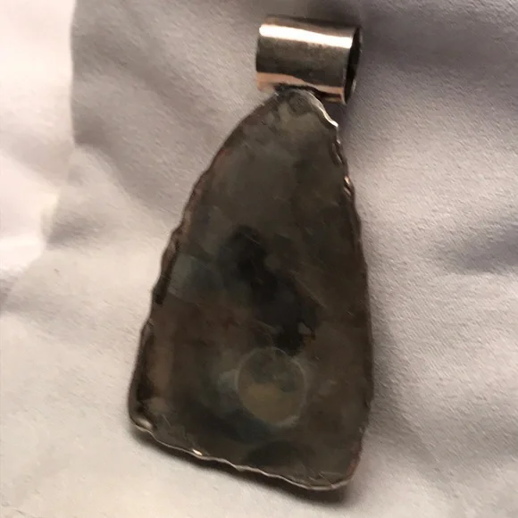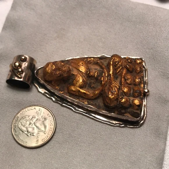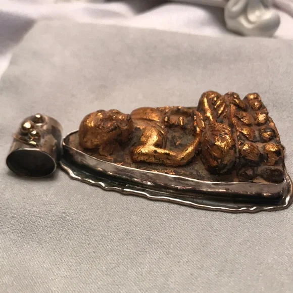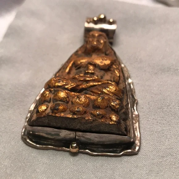 Large Stone carved Buddha in 925 silver and gold accent pendantbeautiful intricate carving Artist marks and 925