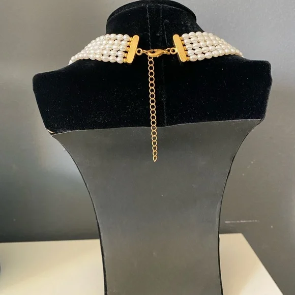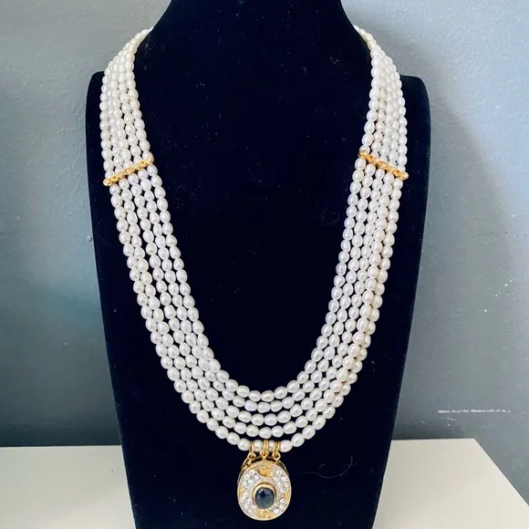 Rare find Antique Elegant Gold plated Five string freshwater natural pearl necklace with a blue sapphire pendant.
