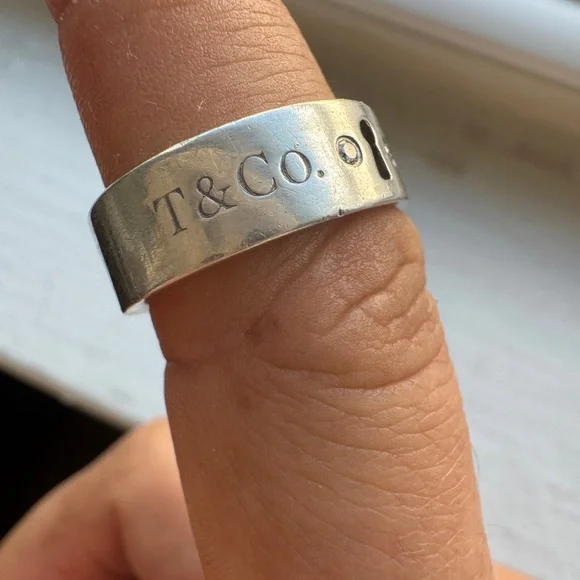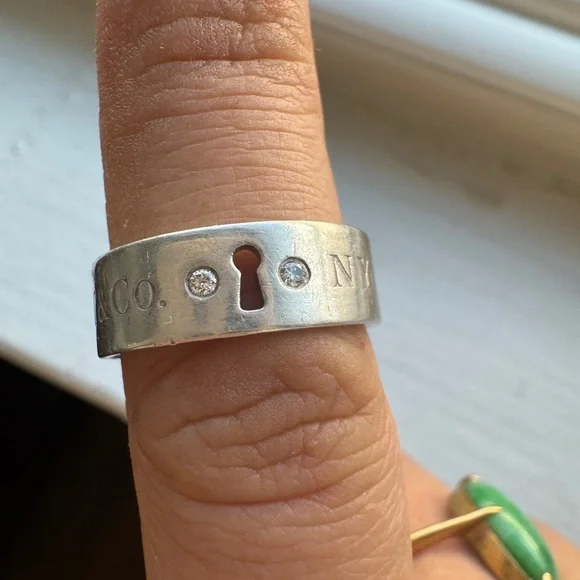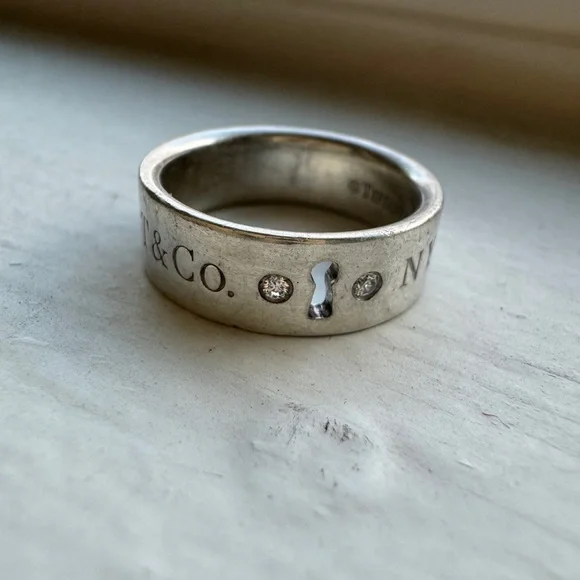 Rare Tiffany & Co keyhole ring. Original owner. As pictured with some tarnish can be cleaned with proper tools! Size 5.5 women’sPhotos with box are not actual item. See video and additional photos for condition. No box or bag included