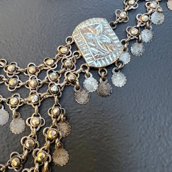 Vintage Art Deco Silver Bib necklace India . Silver Jewelry